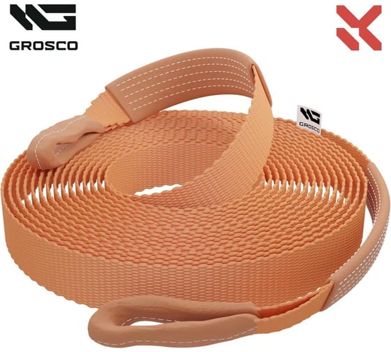 Текстильный буксировочный трос GROSCO. Наиболее популярный вид тросов для буксировки, позволяет вытягивать автомобили, грузовики, лодки, прицепы и другие транспортные средства.