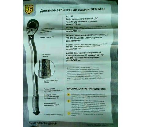 Отзывы о динамометрическом ключе 1/4 дюйма 5-25 Нм Berger BG BG2155