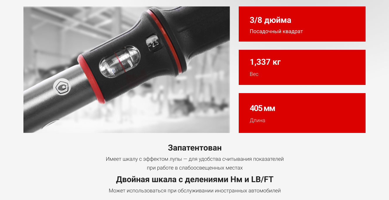 - Двойная шкала с делениями Н·м и LB/FT (фунто-фут);