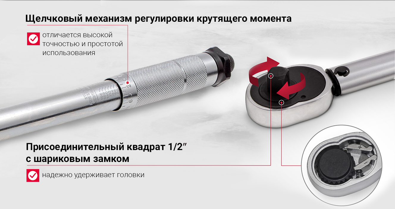 - Плавное затягивание крепежа — ключ оснащен трещоточным механизмом