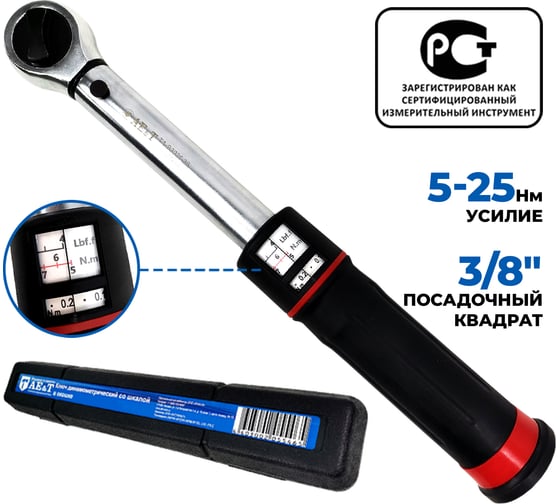 Ключ динамометрическийTA-B3025-38– современный инструмент для затяжки гаек с высокой точностью. Оснащается шкалой в окошке для регулировки крутящего момента в диапазоне 0 – 25 Нм. Официально зарегистрирован как сертифицированный измерительный инструмент приказом Федерального агентства по техническому регулированию и метрологии №2971 от 23/12/2021.