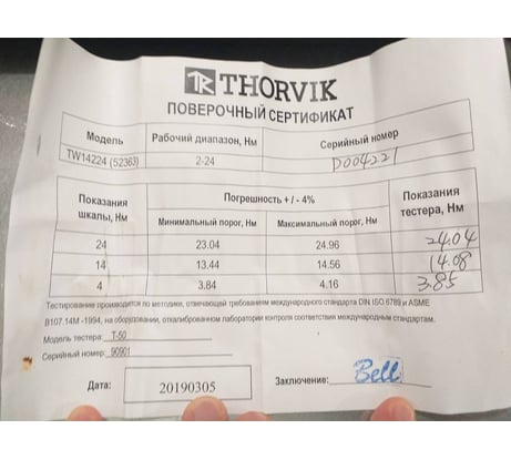 Первичная поверка+наличие в госреестре, шаг регулировки момента, двойная шкала-дюймы и Н/м, качество сборки и отсутвие люфтов, щелчок при срабатывании отчетливый.