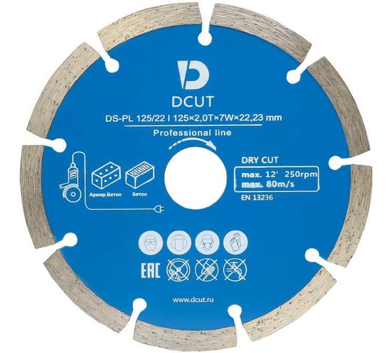 Диск алмазный DCUT D125X1.4TX7WX22.2MM DC12570-PL