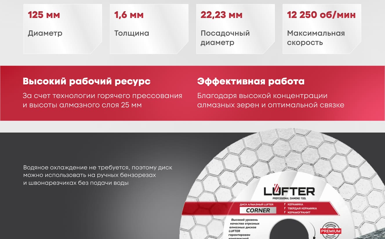 Вопросы и ответы о диске алмазном LUFTER CORNER 125 мм 006-125