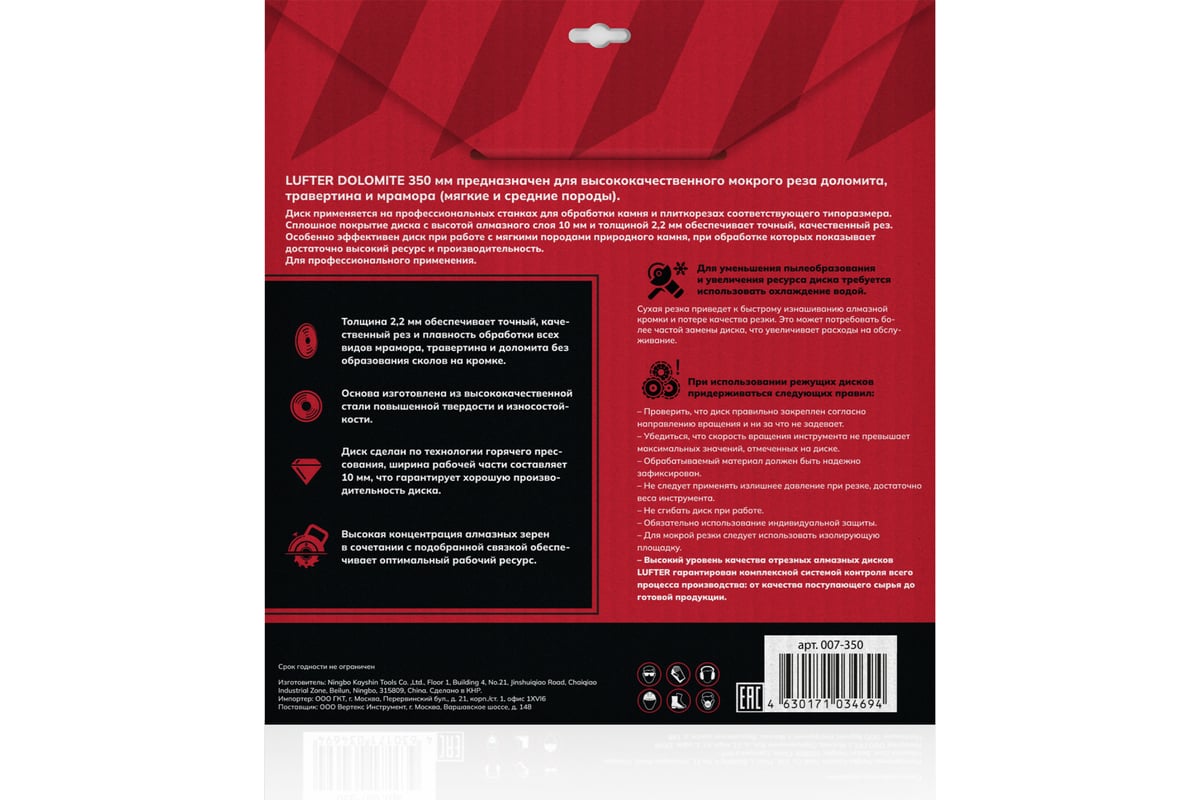 Диск алмазный LUFTER DOLOMITE мрамор, доломит, травертина 350 мм 007-350