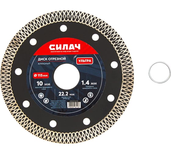 Диск алмазный отрезной СИЛАЧ 115х22.2 мм, УЛЬТРА, по твердой керамике, керамограниту, твердому кафелю 025759