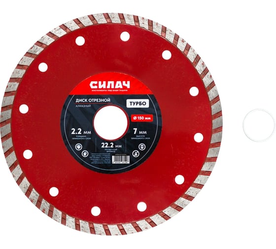 Диск алмазный отрезной СИЛАЧ 150х22.2 мм, ТУРБО, по бетону, кирпичу, камню, граниту 025766