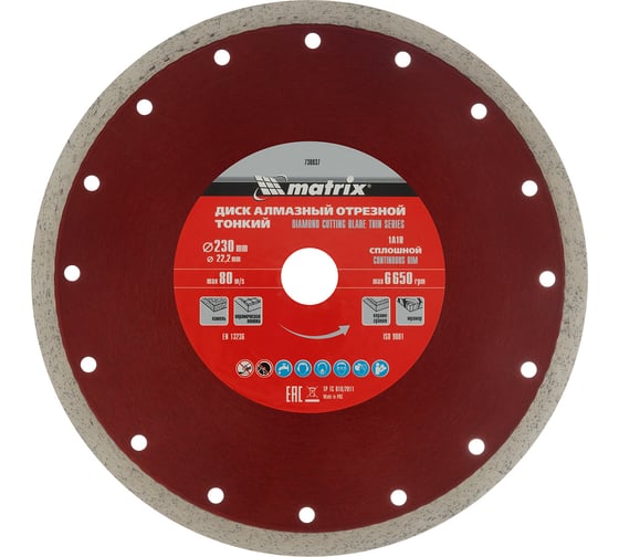 Технические характеристики отрезного сплошного алмазного диска MATRIX 730837