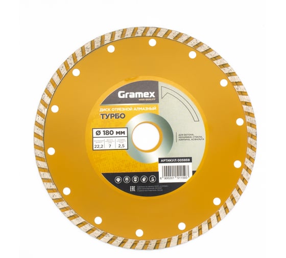 - Диск алмазный отрезной 180x22,2 мм Gramex Турбо.