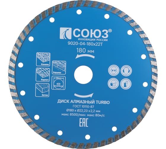Диск алмазный Turbo по железобетону (180х22.2/20 мм) СОЮЗ 9020-04-180x22T