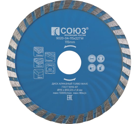 Диск алмазный Turbo Wave (115х22.2/20 мм) СОЮЗ 9020-04-115x22TW