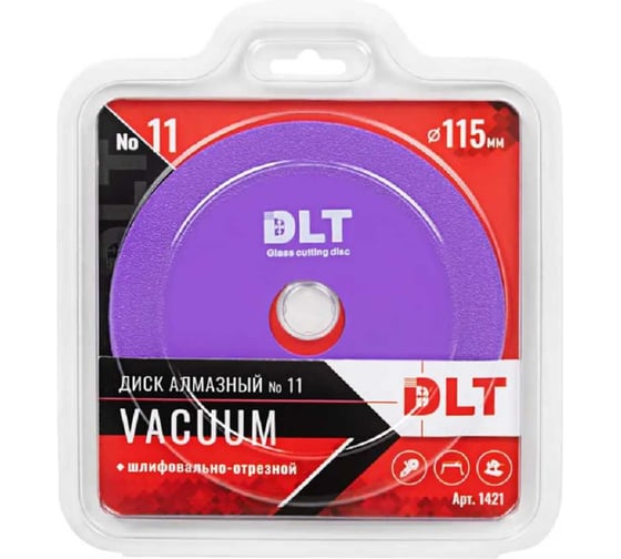 Универсальный шлифовально-отрезной алмазный диск DLT №11 VACUUM предназначен для гладкой резки, снятия фаски и шлифования стекла, нефрита, керамики, керамической плитки и других материалов, также применяется для удаления уже уложенной фуги минимизируя риск появления нежелательных сколов. За счет высокого бокового алмазного слоя в 15мм позволяет обрабатывать глазурованные материалы не повреждая поверхность и не оставляя сколов добиваясь результата сравнимого с заводским краем. Эффективен как при сухой так и при резки с охлаждающей жидкостью (использование водяного охлаждения ускоряет процесс резки и увеличивает срок службы диска).