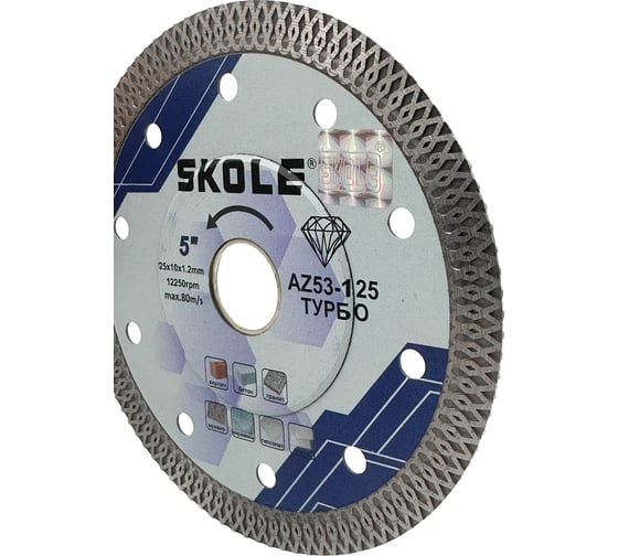 Диск Х-сегмент SKOLE (AZ56) 1.2мм, 125х22.23/20, высота алмаза 10мм AZ53-125
