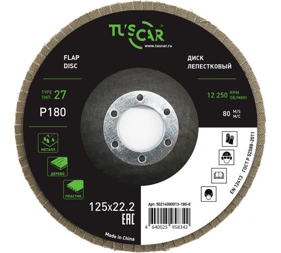 Диск лепестковый торцевой TUSCAR 125х22.2-T27, P180, универсальный (10 штук) 50214000013-180-0