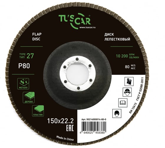 Диск лепестковый торцевой TUSCAR 150х22.2-T27, P 80, универсальный (10 штук) 50214000014-80-0