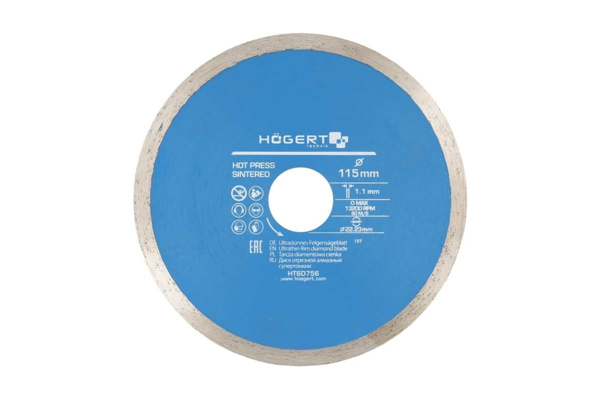 Диск отрезной HOEGERT TECHNIK алмазный, супертонкий 115x1,1x22,23 мм - Прецизионная резка с минимальными сколами.