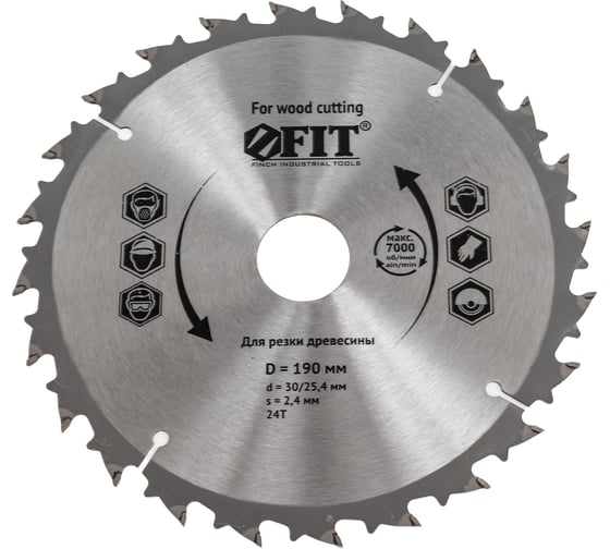 Диск пильный для циркулярных пил по дереву 190x30/20 мм, 24Т FIT 37690