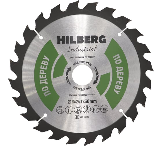 Диск пильный Hilberg Industrial Дерево (216x30 мм; 24Т) HW216