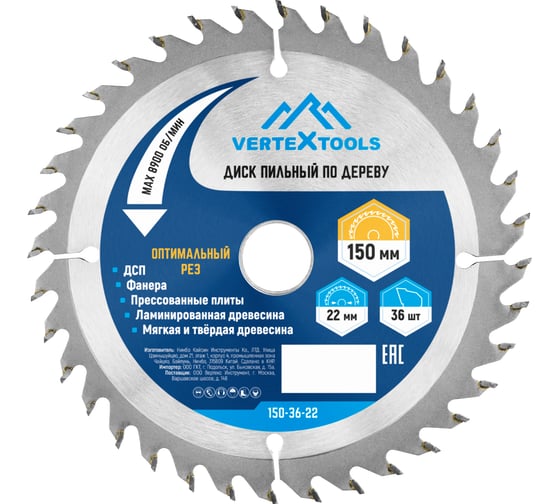 Технические характеристики пильного диска по дереву vertextools 20 150-36-22