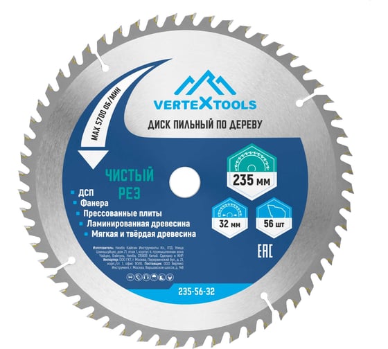 Технические характеристики пильного диска по дереву vertextools 235-56-32