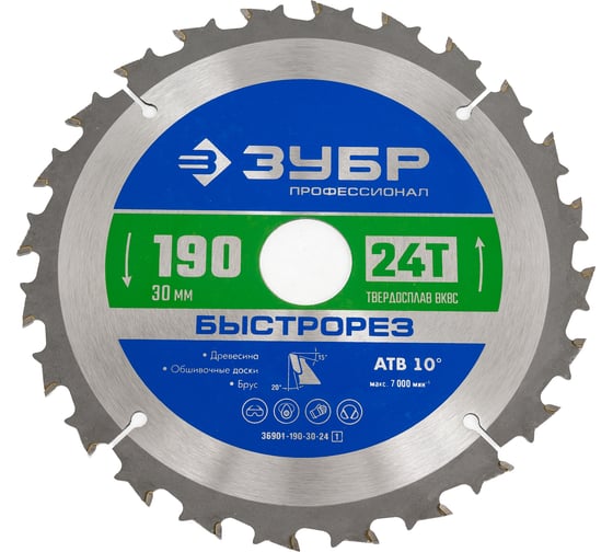 Вопросы и ответы о диске пильном ЗУБР Быстрорез 190x30 мм; 24Т 36901-190-30-24_z01