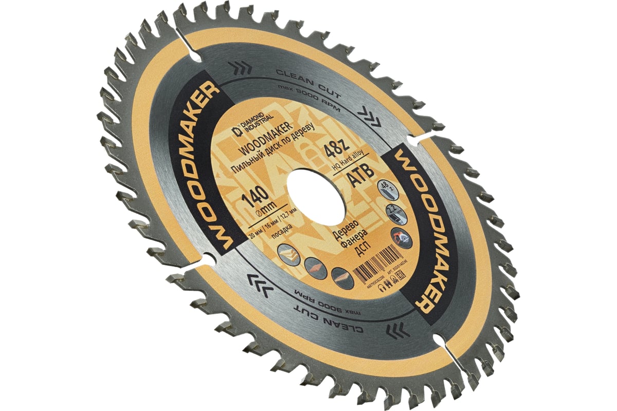 Диск пильный по дереву WoodMaker 140х20/16/12.7 мм, Z=48 АТВ Diamond Industrial DIDD140Z48