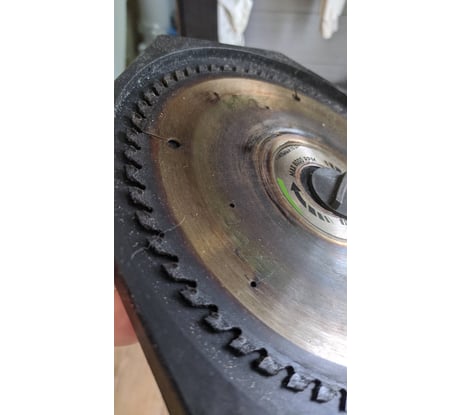 Пилит чисто, но есть но. Диск слишком тонкий и в пиле не зажимает. Нужно искать шайбу походящую. Без диск в пиле буксует.
