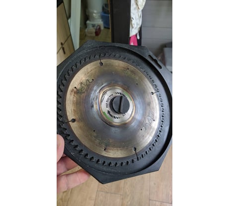 Приходиться проивить смекалку что бы зажать диск в пиле