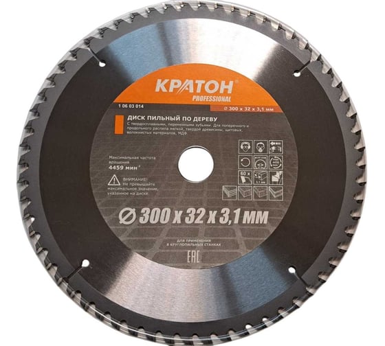 Технические характеристики пильного диска по дереву Кратон 1 06 03 012
