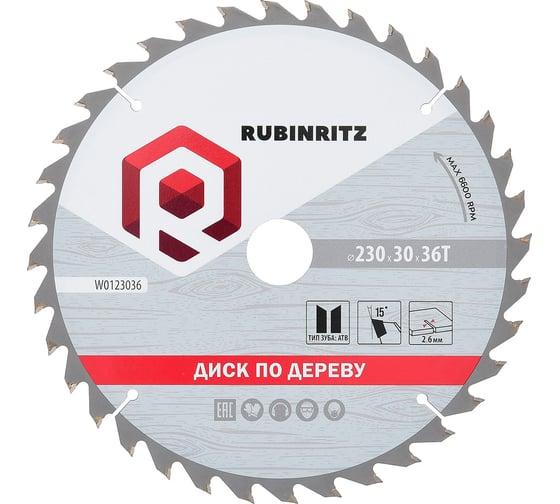 Диск пильный по дереву RUBINRITZ (230х36Т) W0123036