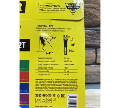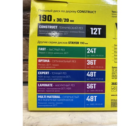 Отзывы о диске пильном по дереву Технический рез (190x30/20 мм; 12T) Stayer 3683-190-30-12_z01