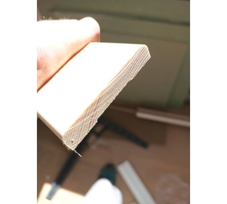 При торцевании "как чисто" (т.е. с минимальным съемом материала) диск уводит в сторону вследствии низкойжесткости; при раскрое фанеры остаются сколы и заусенцы.