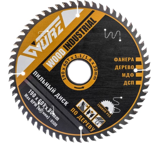 Диск пильный по дереву 190х60Тх1.1/1.6х30мм WURZ WWT19060