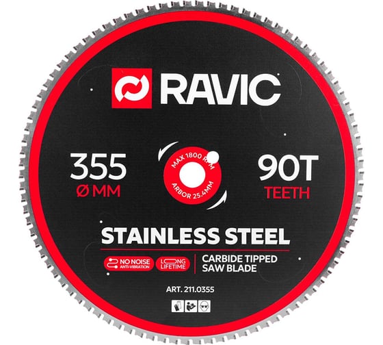 - Диск пильный по нержавеющей стали Ravic, 355x2,2/1,8x25,4 мм, Z=90, артикул 211.0355 - 1 шт.