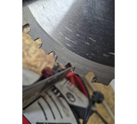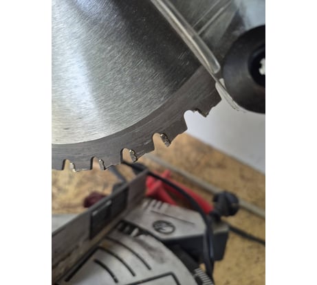 Поставил на форматник. 3000 об/мин. Труба нержавеющая 304ая, 25х25 стенка 2мм, хватило на 3 реза. Зубы на месте, заточка ушла.