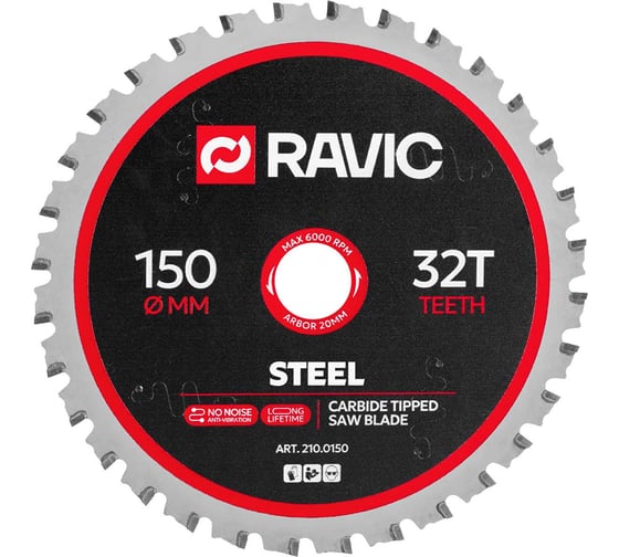 - Диск пильный по стали Ravic 150х1,8/1,4х20 мм, Z=32, арт. 210.0150 - 1 шт.