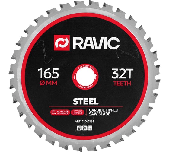 - Диск пильный по стали Ravic 165х1,8/1,4х20 мм, Z=32, арт. 210.0165 - 1 шт.