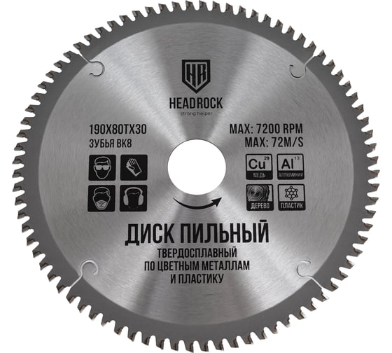 Диск пильный по цветным металлам и пластику HEADROCK 190x80x30 371-040-19008030
