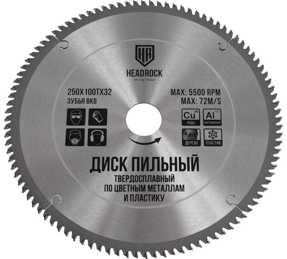 Диск пильный по цветным металлам и пластику HEADROCK 250x100x32 371-040-25010032