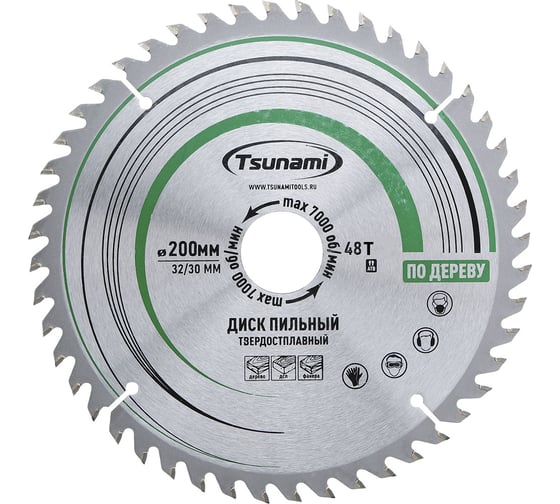 Диск пильный Tsunami 200х32/30мм, 48T дерево T61202004832300