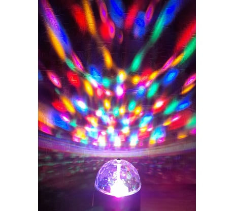 Один похожий ребенок уже сломал, поэтому важным критерием была минимальная цена. Сам шар маленький, работает от сети. Крутится быстро, почти беззвучно, цвета яркие