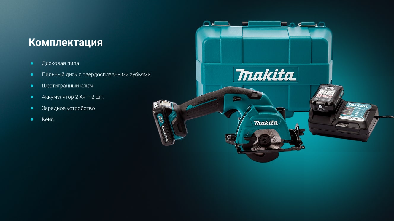 - Кейс - для удобства хранения и транспортировки дисковой пилы Makita HS301DWAE.