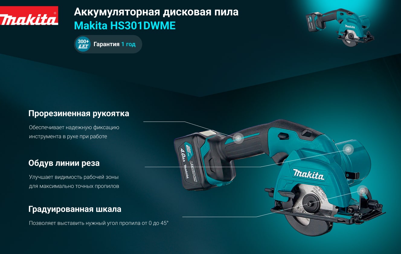 - Рукоятка с покрытием из эластомера - для комфортной работы дисковой пилой Makita HS301DWME.