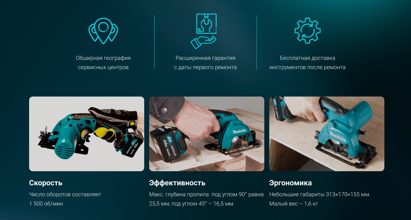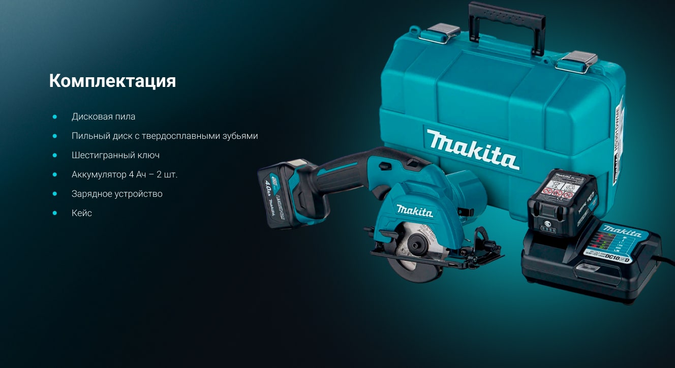 - Кейс - для удобства хранения и транспортировки дисковой пилы Makita HS301DWME.