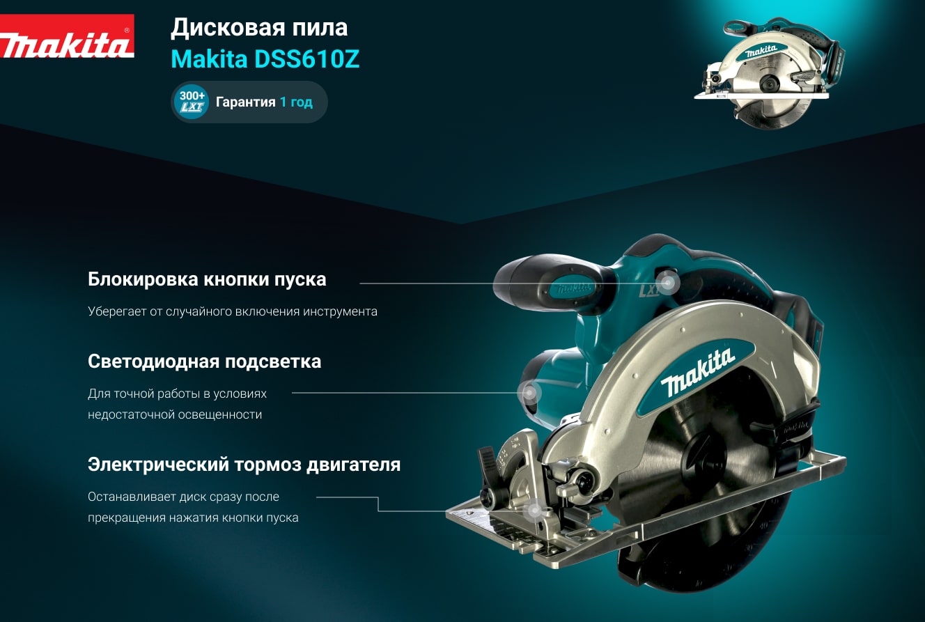 Дисковая пила Makita LXT DSS610Z - незаменимый инструмент для работы в местах с отсутствием электросети. Модель предназначена для работы с мощным Li-ion аккумулятором. Линейка и параллельный упор обеспечивают быстрый и точный распил. Защитный кожух на рабочем основании диска уменьшает риск травм при эксплуатации с инструментом. Светодиодная подсветка рабочей зоны позволяет работать в плохо освещенных местах.