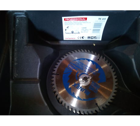 Удобный кейс с отделением для запасных дисков. Есть лазерный указатель направления реза и параллельный упор. Достаточная мощность и неплохая толщина пропила.