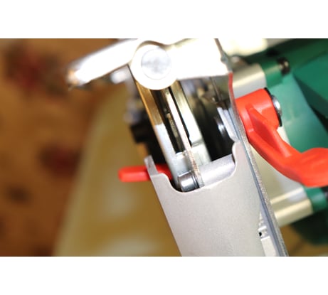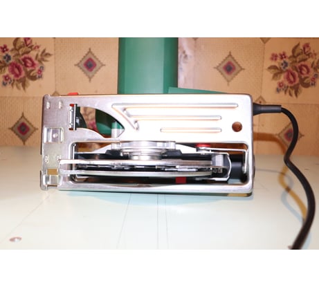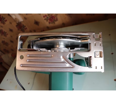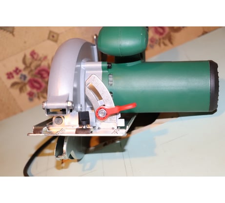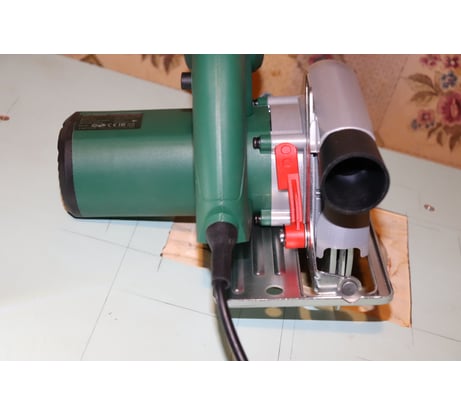 Выбирал между Kolner KCS 185\1500 и этой моделью. Наконец решил, что зеленый цвет более приятный для глаз. Но по факту цвет оказался другой, скорее сине-зеленый. Есть расклинивающий нож, но он установлен немного криво. Возможно, если подложить шайбы, он выправится. Штатный диск толщиной 1,6 мм, толщина пропила 2,7 мм. Подошва штампованная из металла 2 мм и, как мне кажется, недостаточно жесткая. Углы 90 и 45, в принципе соответствуют.Шкала глубины пропила закрывается ручкой фиксатора и плохо видна.В целом пила кажется неплохой для начинающих пильщиков.