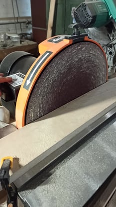 Отличный инструмент! Мне нравится! Очень тихий, массивный, основательный! Биение у рабочего диска (в моем случае) отсутствует, установил зазор между столом и абразивом 1 мм👍 (мне так нужно)! Стол выставил естественно по угольнику, заводскими метками не руководствовался, но они близки по смыслу)) Сначала была вибрация при работе, заметил, что абразив в диаметре на 2 мм больше и наклеен не по центру. Обрезал лишнее ножом и вибрация стала минимальной! (Видео снято до обрезки) Абразив наклеен зернистость примерно 60. Сам вращаюшийся диск очень массивный, выполнен из стали (не алюминий), имеет высокую инерцию, это хорошо! Центр вращения диска выше стола на примерно 10 мм. при угле стола 90 гр. Изучая фото товара думал, что двигатель имеет оребрение, которое спрятано под кожух - нет, оребрение только на переднем флаце, то что видим! Из патрубка для пылесоса дует при работе и выдувает абразив)). Взял этот, а не гриндер, потому что гриндер слишком сложный, много деталей, подшипники, которые быстро перегреваются, сохнут и дохнут)), шумный из за тех же подшипников! В целом, я доволен))