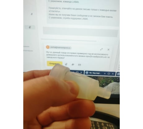 Ровно за год домашнего использования полная колба начала уходить за несколько часов, разобрал, лопнул по шву силиконовый дозатор (см. фото), заморочился и списался с производителем, ответ: нет таких комплектующих, выбрасывай и покупай новую... Но с *надцатой попытки нашел её на Озоне, заказал,должна подойти. Но если бы не получилось, то срок службы год и в мусорку для подобного устройства - это прям огромный минус.