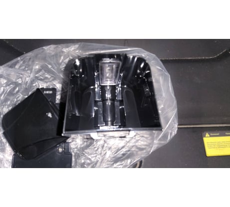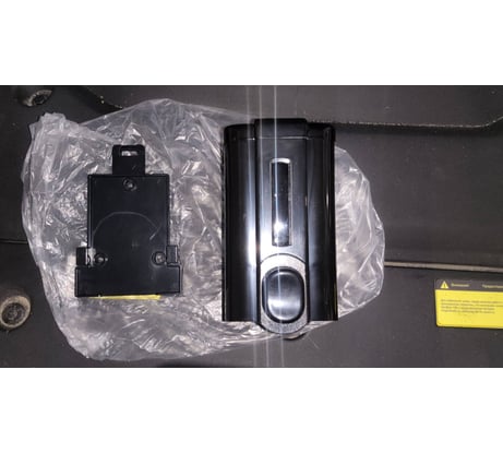 Глянцевый чёрный пластик, стандартный механизм подачи моющего средства нажатием на кнопку. Есть ключик для закрытия верхней крышки. Крепится на салазки, которые заранее крепятся к стене.